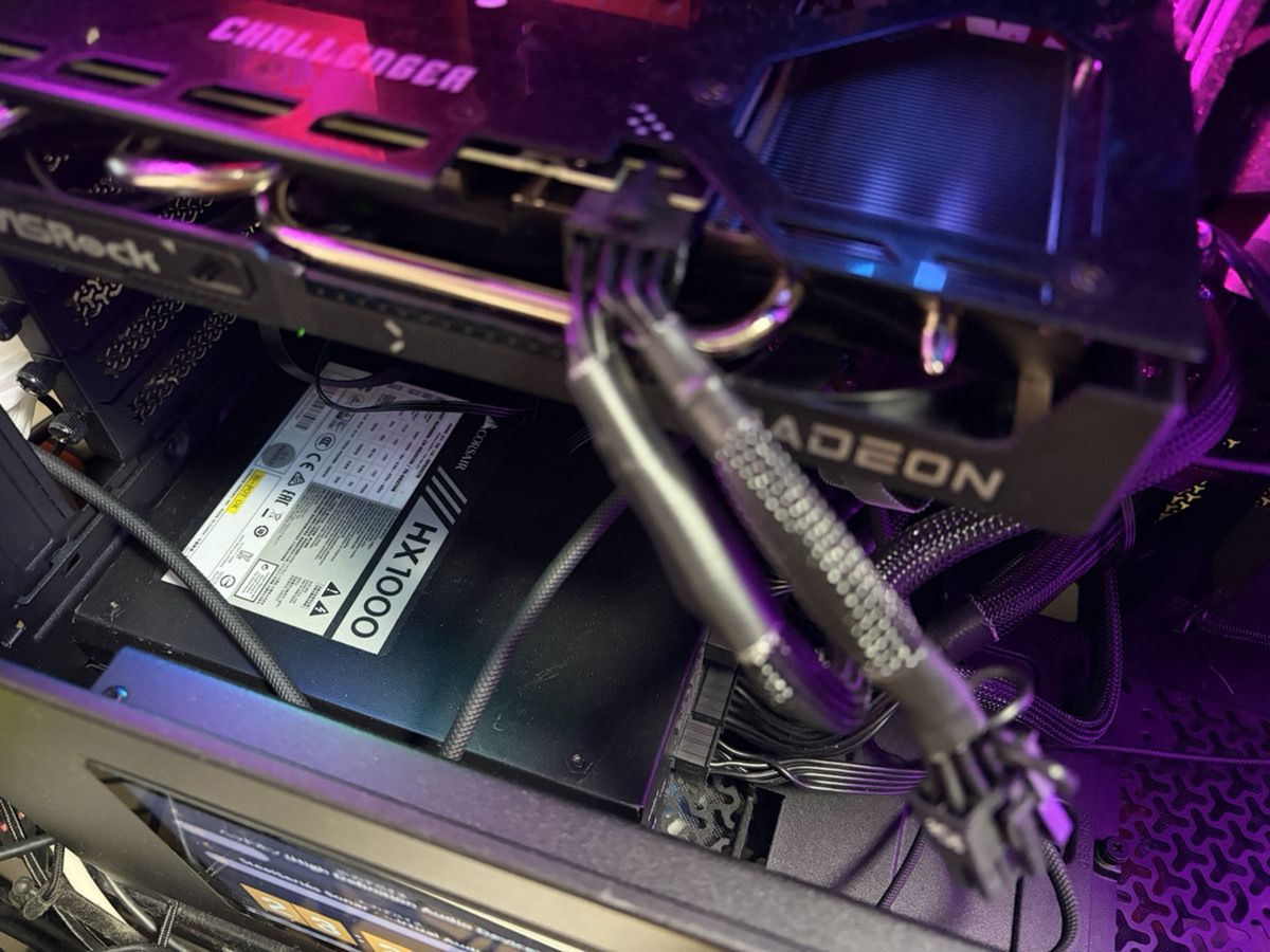 ただし、これをPCケースに装着……というわけにはいきません。電源用のシュラウドと、XENEON EDGEが干渉してしまうからです。このシュラウドは、ネジを外せば簡単に取り外すことができますが、私の場合はすでに組んだ状態からマウントキットを取り付けようとしたので、結構取り外す際に慎重になる必要がありました。もしFRAME 5000Dにパーツを組み込む前であれば、最初にシュラウドを取り外しておくと楽だと思います。