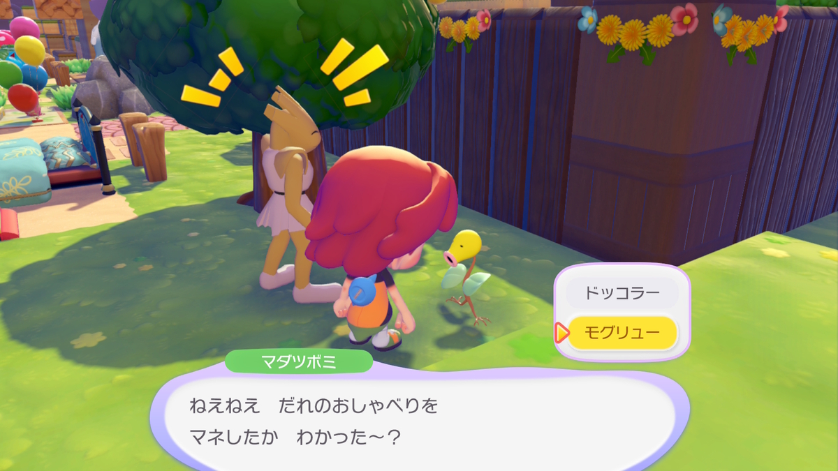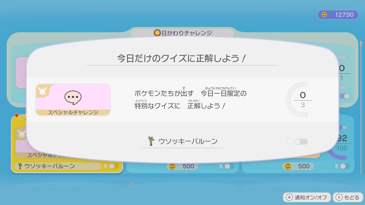 ポケモンたちがクイズを出してくるので、誰の話し方をマネしているか回答しよう。正解すると「ウソッキーバルーン」がもらえる。