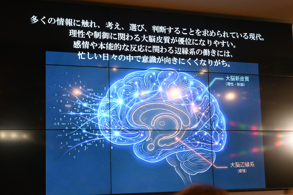 発表会では、脳科学者の枝川義邦さんが登壇。脳科学の観点から、ときには理屈や正しさを脇に置き、本能のスイッチを入れることも大切だと語りました。
