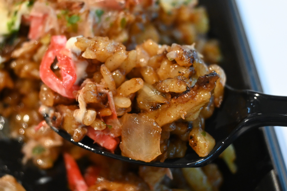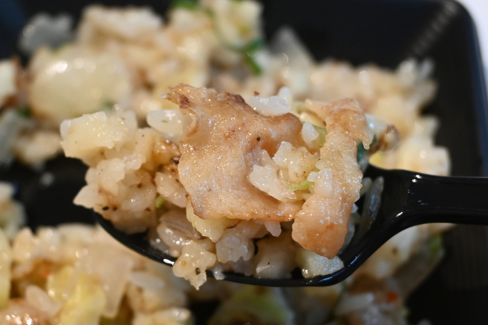 そばめしの場合、麺を細かく刻んでごはんと一体感を出すケースが多いですが、「うどんメシ」はうどんのカットが大きく、うどんの食感の持ち味を残しています。ここが、うどん主体の丸亀製麺らしいこだわりポイントなのでしょう。