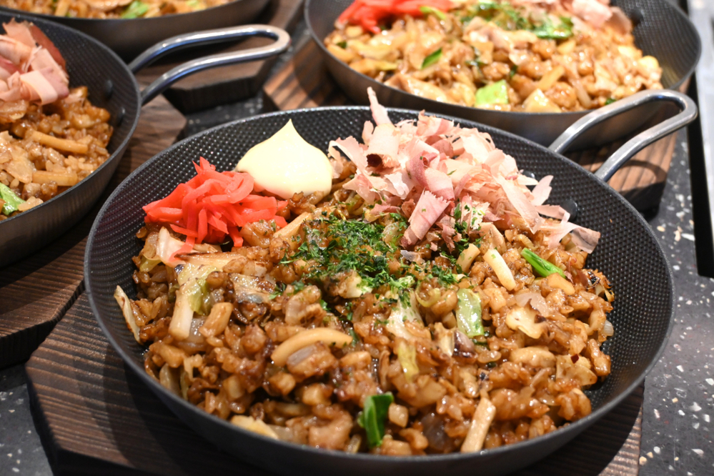 グリルパンで注文が入ってから焼きたてで提供。もちもちのうどんに、ごはんが一体となった「ふわッ、もちッ」食感が特徴だといいます。