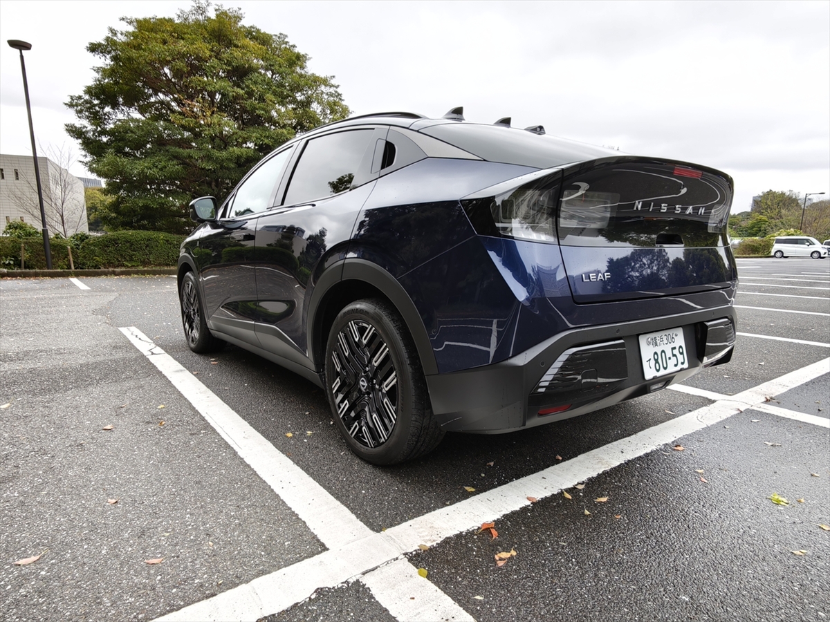 3代目となるリーフは、スタイリッシュなクーペSUVへと生まれ変わりました。全長4360×全幅1810×全高1550mmと、先代より全長が短くなり、見た目以上にコンパクトで扱いやすいサイズ感です。全高は機械式駐車場にも対応できる高さに抑えられているので、駐車場難民になりにくいのもポイントです。