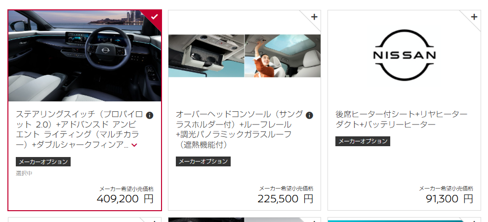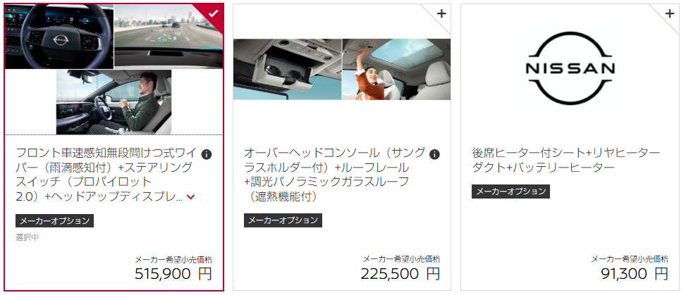 高速道路などでの高度な運転支援機能である「プロパイロット 2.0」ですが、新型リーフでは標準装備ではなくメーカーオプション扱いとなっているので、この機能を付けたい場合は別途費用がかかる点には注意が必要です。