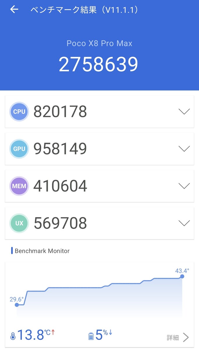 home > ガジェット > モバイルバッテリーかと思ったらスマホかよ! 8500mAhがスゴすぎるが、実際の性能はどうよ? 前へ 1 2 3 4 5 あなたが買うべきガジェットは俺たちに選ばせてくれ! 推しガジェット大賞 2026 第94回 シャオミ「POCO X8 Pro MAX」 モバイルバッテリーかと思ったらスマホかよ! 8500mAhがスゴすぎるが、実際の性能はどうよ? 2026年04月10日 17時00分更新 文● スピーディー末岡/岡本 編集●ASCII ポストする POCO X8 Pro Maxギャラリー ■Amazon.co.jpで購入 シャオミ「POCO X8 Pro Max」(12GB+256GB、ホワイト) この記事をシェアしよう ポストする 前へ 1 2 3 4 5 週刊アスキーの最新情報を購読しよう Follow @weeklyascii カテゴリートップへ 本記事はアフィリエイトプログラムによる収益を得ている場合があります この連載の記事 この連載の一覧へ この記事の編集者は以下の記事をオススメしています スマホゲーム大好きな若者に! CPU&画面&大容量バッテリーに全振りな「POCO X8 Pro Max」はガチ安い シャオミ「POCO X8 Pro」が17日発表! MediaTek製ハイエンドSoCでお手頃価格&高いゲーム性能に期待大 バケモノ級8500mAhバッテリー搭載! 「POCO X8 Pro Max」が日本上陸、このスペックで8万円切りはヤバい Tweets by weeklyascii