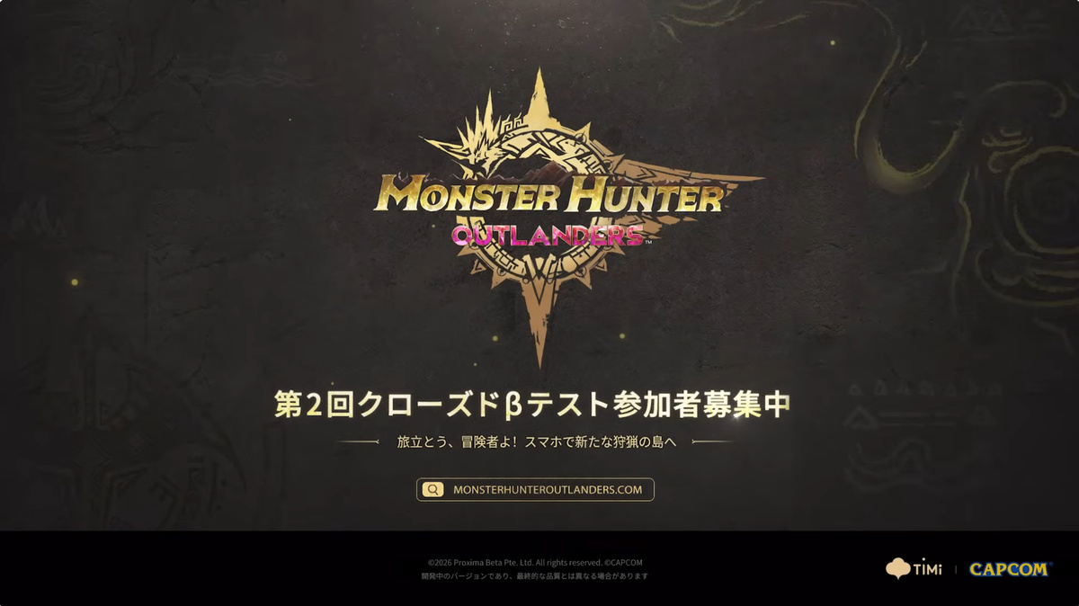Level Infiniteは4月2日、カプコン監修でTiMi Studioが開発する新作ハンティングアクションゲーム「モンスターハンターアウトランダーズ」について、第2回クローズドベータテストの参加者募集を開始したと発表。募集アンケートに回答した人の中から選考のうえ、当選者のみテストプレイに招待される形だ。