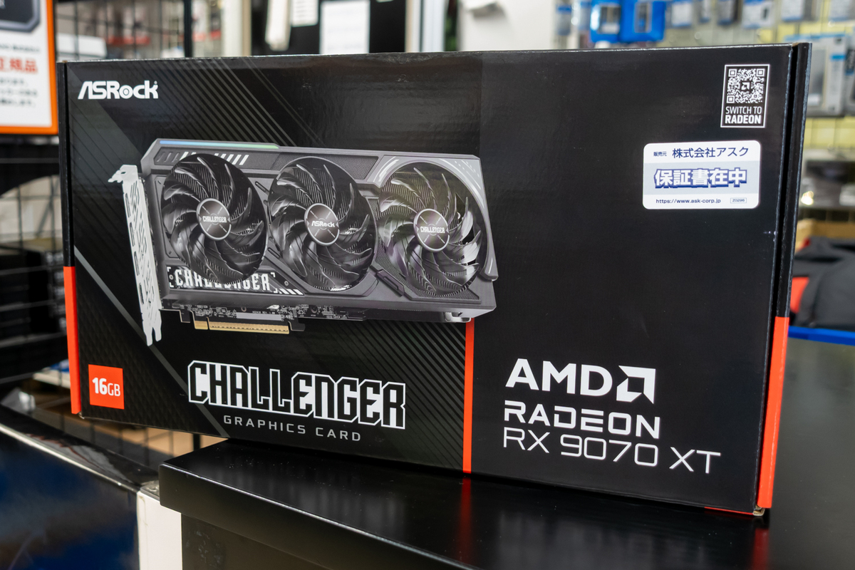 ビデオカードは、WQHD/4K解像度でのゲームプレイを狙えるRadeon RX 9070 XT 16GB搭載ビデオカードのASRock「Radeon RX 9070 XT Challenger 16GB」だ。