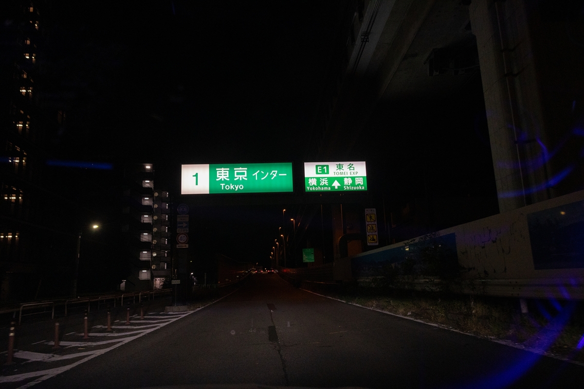 東名高速で東京へ。首都高を通り常磐道と走ること約6時間。深夜0時に友部サービスエリアに到着。それまでの距離は約750km。ラクなE220d アバンギャルドでも、さすがに疲れました。