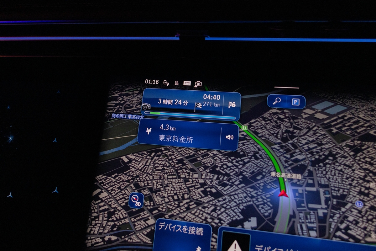東名高速道路に乗り、目指すは280km先の豊橋駅です。約3時間30分の長旅ですが、E220d アバンギャルドならきっとラクラクのハズ。