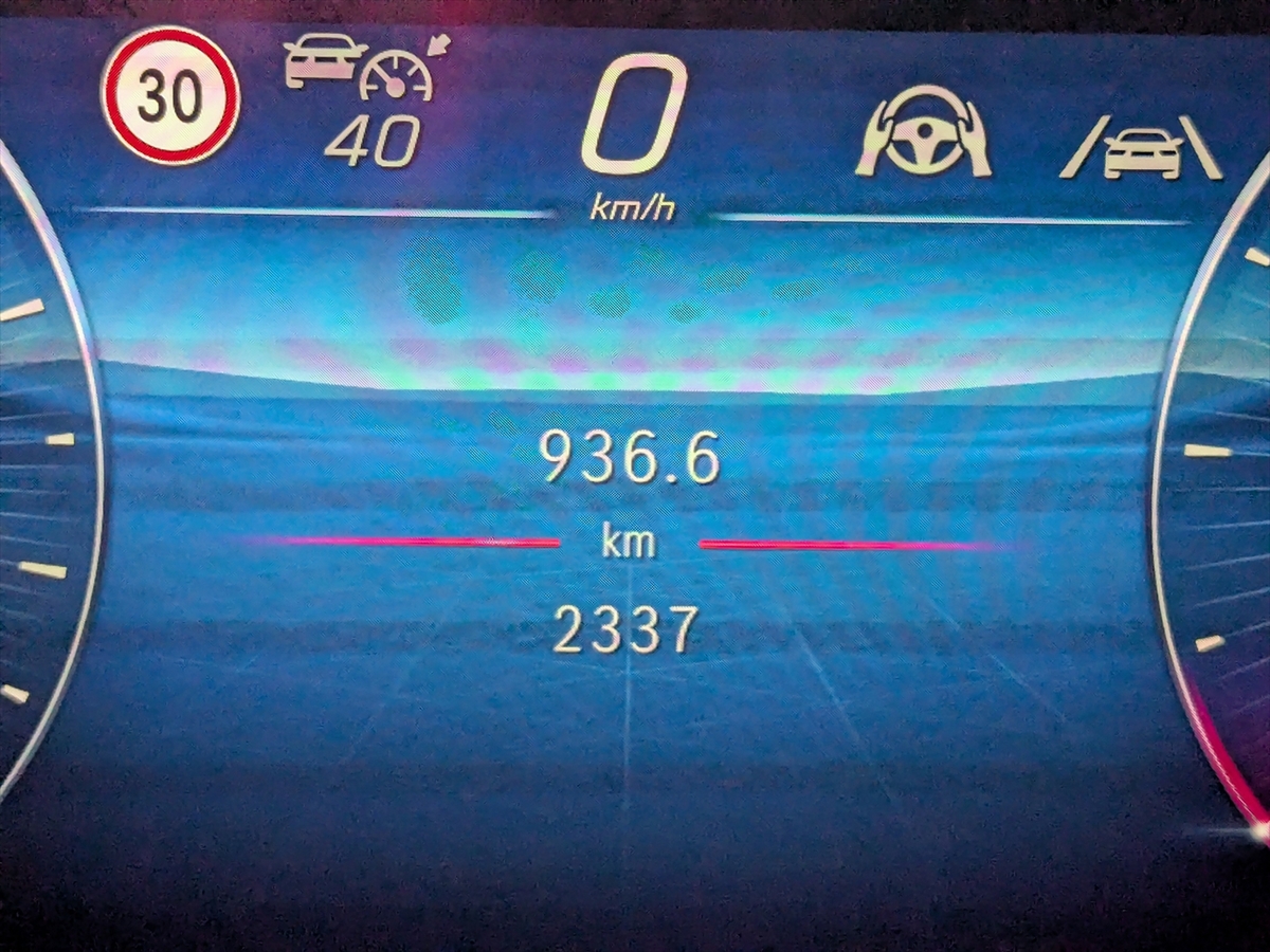 120km/h区間も100km/hのままで中央車線を巡行。120km/hの追い越し車線巡行をすることなく、一路西へ向かいます。メルセデスのクルーズコントロールは大変優秀で、一度も白線をはみ出したり、割り込み時に急ブレーキをすることなく、実にスムーズです。