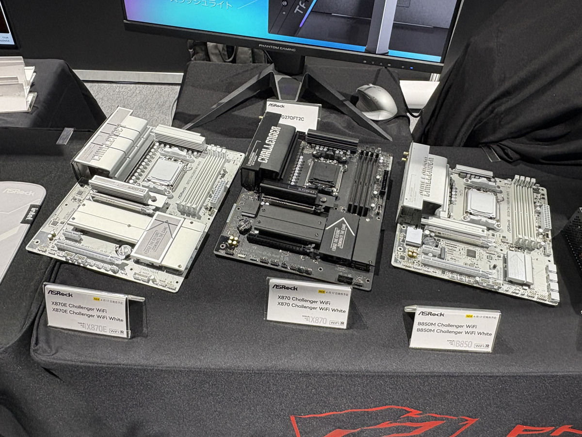 4月17日発売予定のマザーボード。左からX870E Challenger WiFi、X870 Challenger WiFi、B850M Challenger WiFi