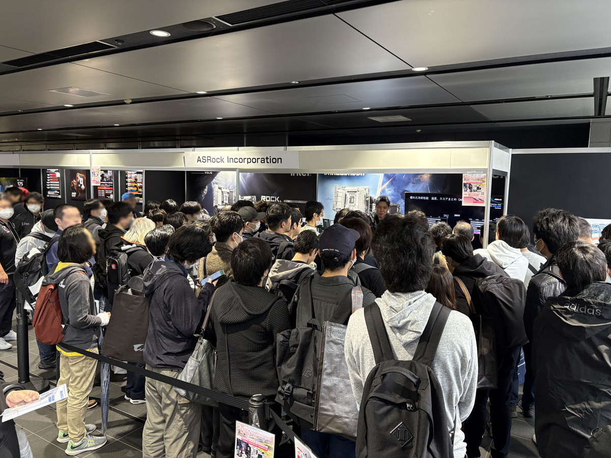 同社の原口氏がブースで話し出すと、これだけの人が集まる! ファン層の厚さがよくわかる