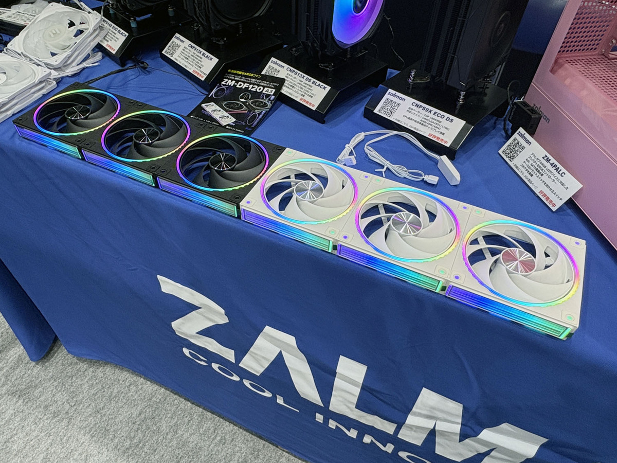 近日発売予定の連結可能なリバースファンZM-DF120R A3。マグネット式接続で簡単にファン同士を連結できる