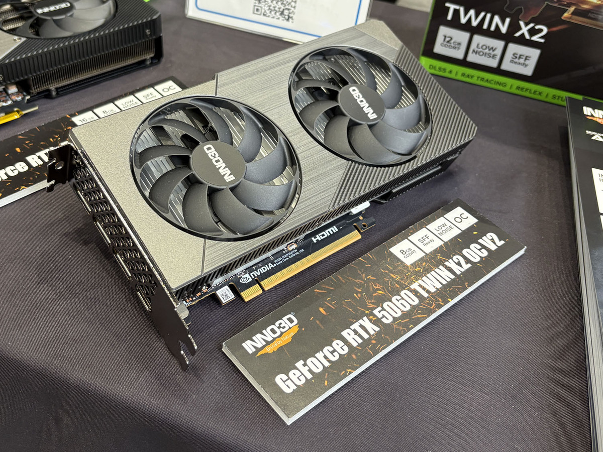 GeForce RTX 5060(Tiではない)搭載ビデオカードのGeForce RTX 5060 TWIN X2 OC V2。全長が225mmと、GeForce RTX 50シリーズとしてはかなり短い