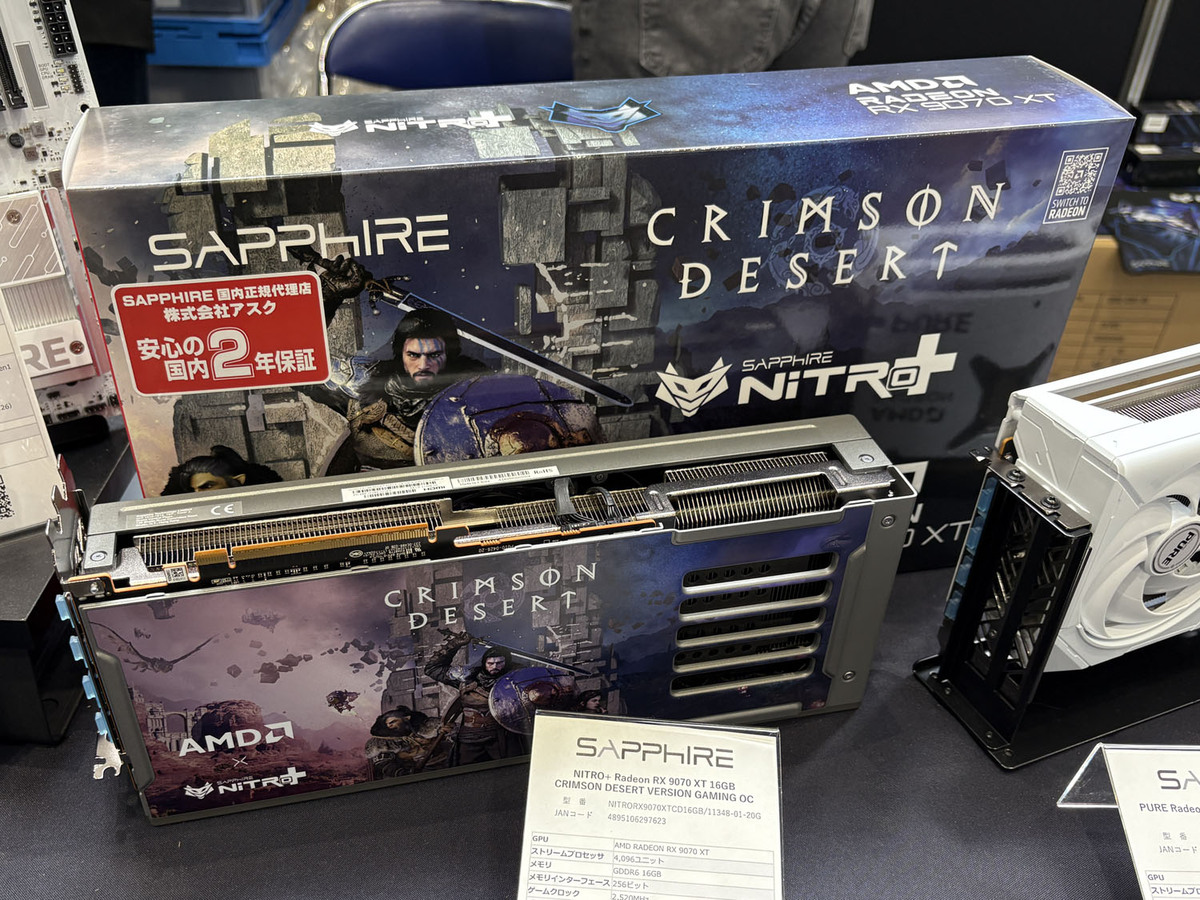 home > ガジェット > 沸騰冷却PCまで現れた「ASK★FES 2026」が開幕! 秋葉原に集結した最新PCパーツとMOD PC作品をチェック 前へ 1 2 3 4 5 6 沸騰冷却PCまで現れた「ASK★FES 2026」が開幕! 秋葉原に集結した最新PCパーツとMOD PC作品をチェック 2026年04月04日 22時00分更新 文● ドリル北村 ポストする Sapphire 紅の砂漠仕様のビデオカードNITRO+ Radeon RX 9070 XT 16GB CRIMSON DESERT VERSION GAMING OCを展示 マザーボードPURE X870A WIFI 7(右上)とNITRO+ X870EA Phantomlink Polar Edition(その左)を4月中に発売する AGI 現行のDDR5メモリーとSDカード、SSDを展示 AverMedia モバイル充電器に見えるが、これはキャプチャーユニットだというから驚き! 写真の「Gc313Pro」は、1080P60の録画・配信に対応し、HDMI出力とUSBハブを備える 100Wの充電にも対応し、最大3台同時充電が可能。Nintendo Switch 2で動作確認済 【関連サイト】 アスク この記事をシェアしよう ポストする 前へ 1 2 3 4 5 6 週刊アスキーの最新情報を購読しよう Follow @weeklyascii カテゴリートップへ 本記事はアフィリエイトプログラムによる収益を得ている場合があります この記事の編集者は以下の記事をオススメしています PC自作好きの同志、PCパーツメーカーと自作erが集った「ASK FES 2022」が最高だった 自作PCの祭典「ASK FES 2023」で見たカスタムPCに驚愕、これこそが自作の醍醐味だ PCパーツの祭典「アスクフェス2025」開催、開場前から長蛇の列 Tweets by weeklyascii