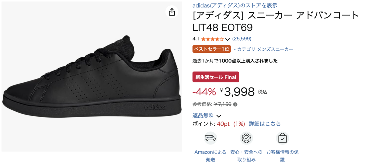 アディダスのアドバンコート LIT48 EOT69が、Amazonで44%OFFの3,998円で販売されています!