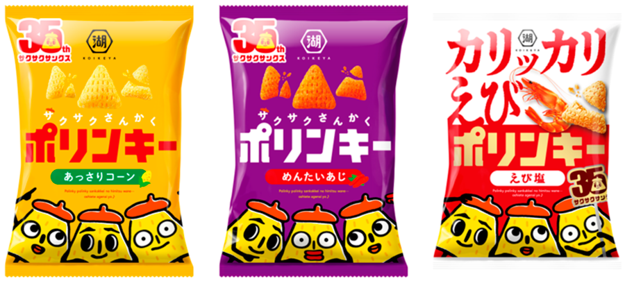 「ポリンキー」は1990年発売で、今年で36周年。「スリーポリンキーズ」のキャラクターによる「三角形の秘密はね……教えてあげないよ♪」のCMで知られています。