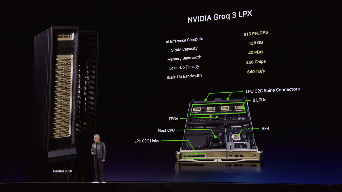 以上のことから、GTCで発表されたのが推論アクセラレーターのGroq 3 LPUである。Groq社本体はもうチップやシステム販売ではなくクラウドサービスの形でのビジネスを行なっているので、このGroq 3は(製造こそGroqなものの)事実上NVIDIAに対する専売品という扱いと考えていいだろう。