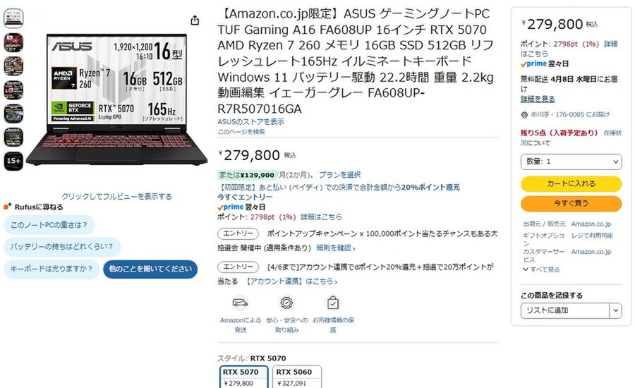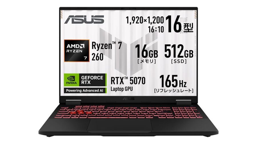Ryzen 7 260&RTX 5070で“長く戦える性能”を詰め込んだASUS製16型ゲーミングノートPCが27万円台!