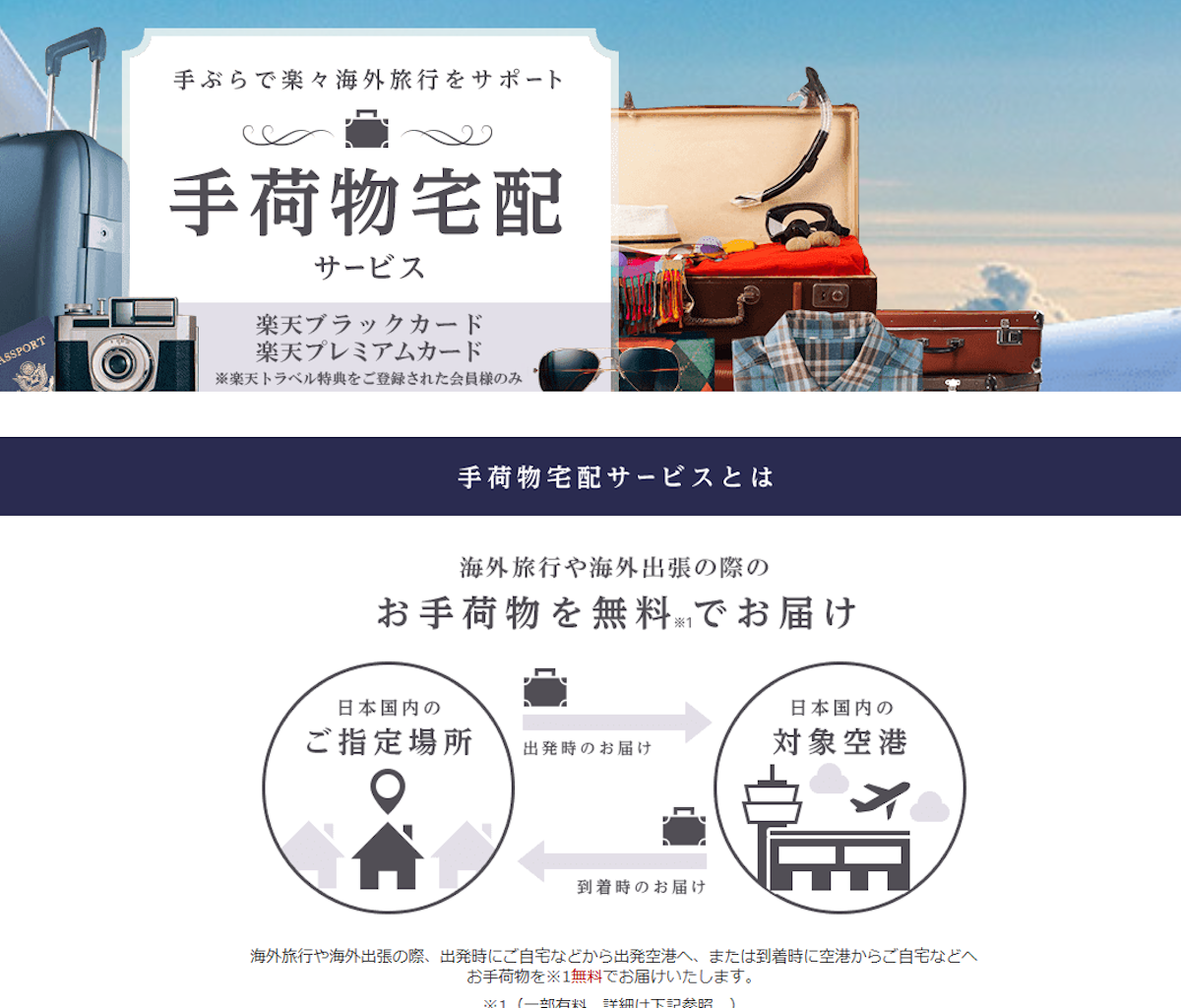 ちなみに、楽天プレミアムカードやセゾンプラチナ・アメックスなど、クレジットカードによっては、無料の「空港手荷物宅配サービス」が付帯するケースもあります。こういったサービスを活用すれば、オトクに手ぶらで空港まで移動、もしくは帰国時に空港から手ぶらで自宅へと帰れます。