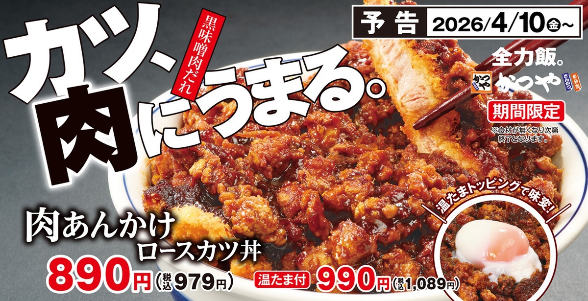 かつやは「肉あんかけロースカツ丼」「肉あんかけロースカツ定食」を4月10日より期間限定で発売します。