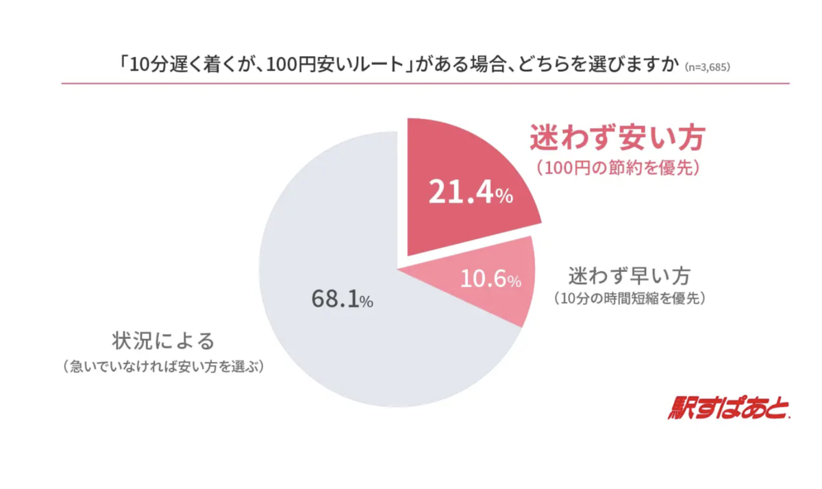 とある調査で、「10分遅くなるけど100円安いルート」と「100円高いけど10分早いルート」、どちらを選ぶかを聞いたところ、意外な結果が見えてきました。