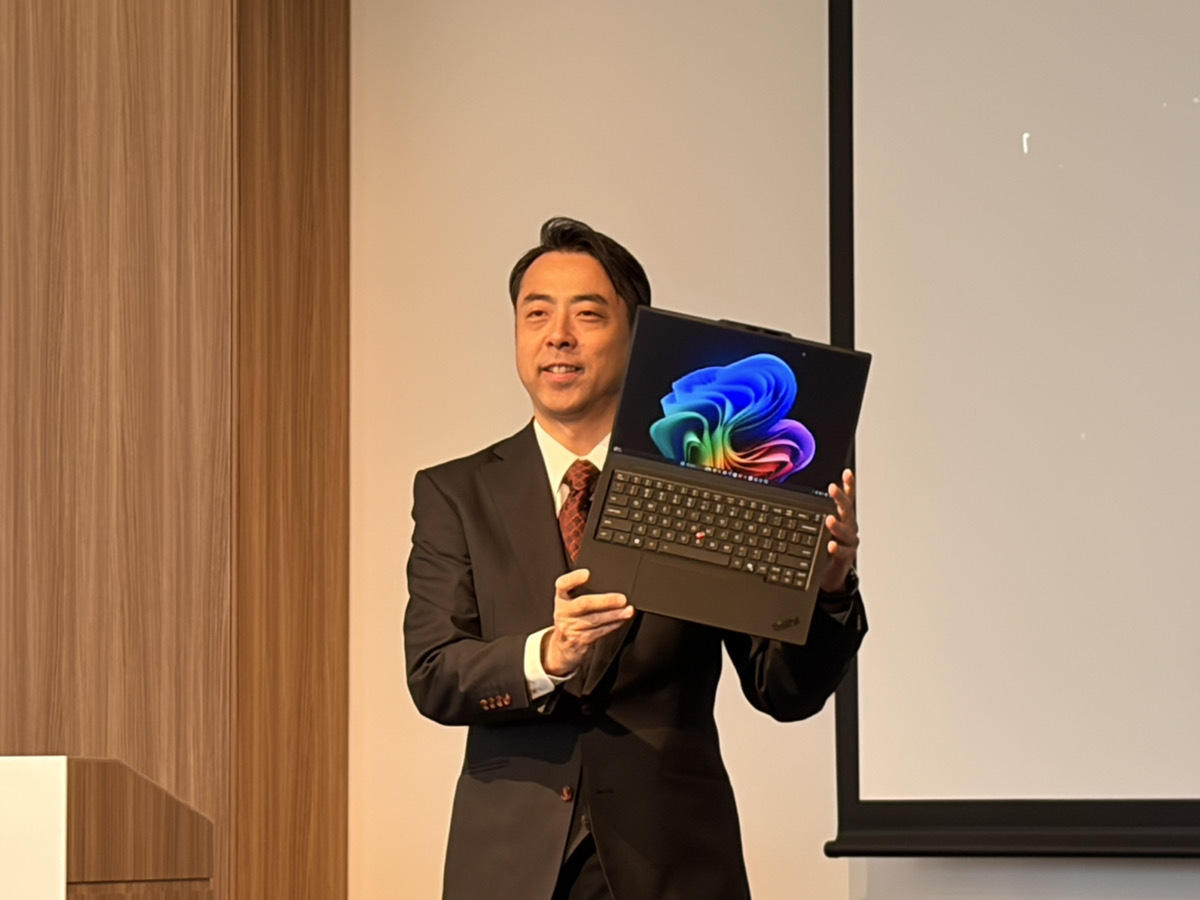 発表会で登壇したレノボ・ジャパン執行役副社長の塚本氏は、1992年の誕生から35年を迎えようとしているThinkPadの哲学を振り返りつつ、AI時代の方向性を説明。