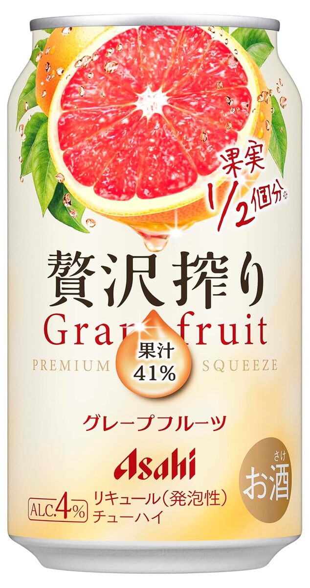 「贅沢搾り グレープフルーツ」は、果実2分の1個分以上の果汁を1缶に使用したチューハイです。
