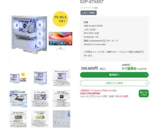 同じページには5070 Tiや7800X3Dのモデルも並んでいる。このモデルから見て、自分の予算とニーズに合ったPCを探してみてはいかがだろうか。