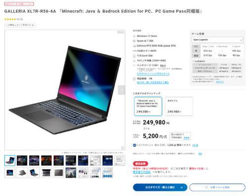 ドスパラでは現在、「対象PC値引きクーポン」キャンペーンを実施中。対象モデルをカートに入れてクーポンコードを入力すると、その場で値引きされる。今回の「GALLERIA XL7R-R56-6A」も対象で、2万円引きになる1台。