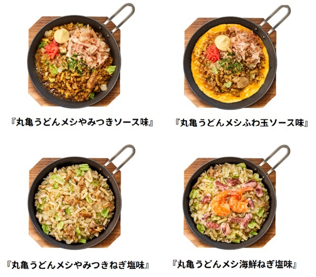 味は、香ばしさが魅力の「ソース味」と、パンチのある「ねぎ塩味」の2タイプで、「丸亀うどんメシやみつきソース味」「丸亀うどんメシふわ玉ソース味」「丸亀うどんメシやみつきねぎ塩味」「丸亀うどんメシ海鮮ねぎ塩味」の全4種です。