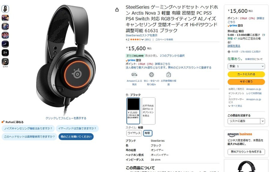 Amazon.co.jpにて、SteelSeriesのゲーミングヘッドセット「Arctis Nova 3」が販売中だ。価格は1万5600円。