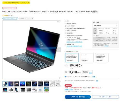 今回の「GALLERIA RL7C-R35-5N」も対象で、クーポン適用で1万円引きになる。ゲーミングPCを探していて、少しでも価格を抑えたいなら、この機会にチェックしてみては?