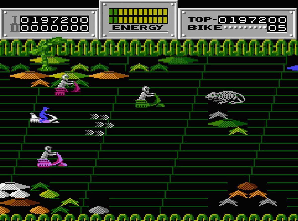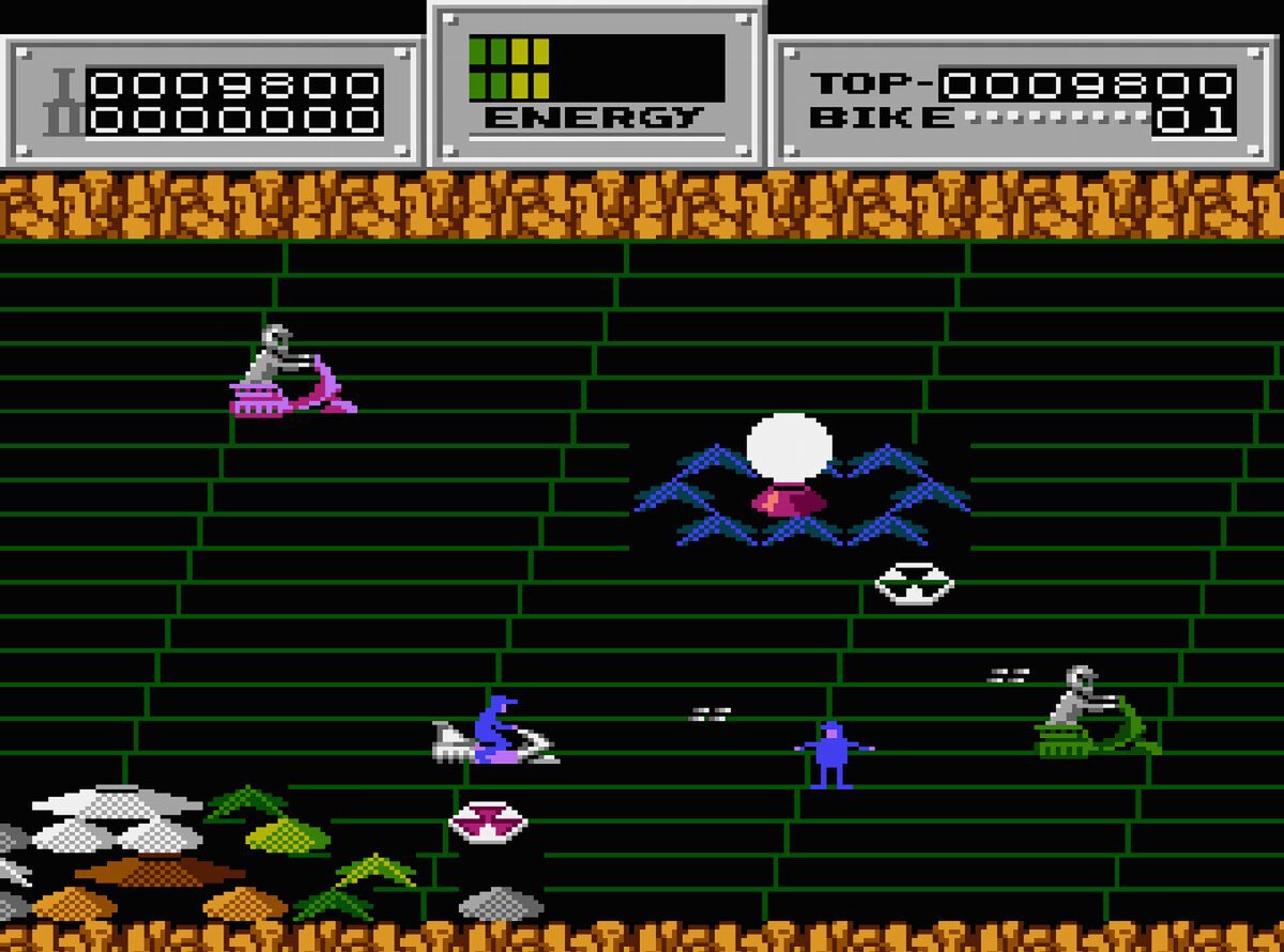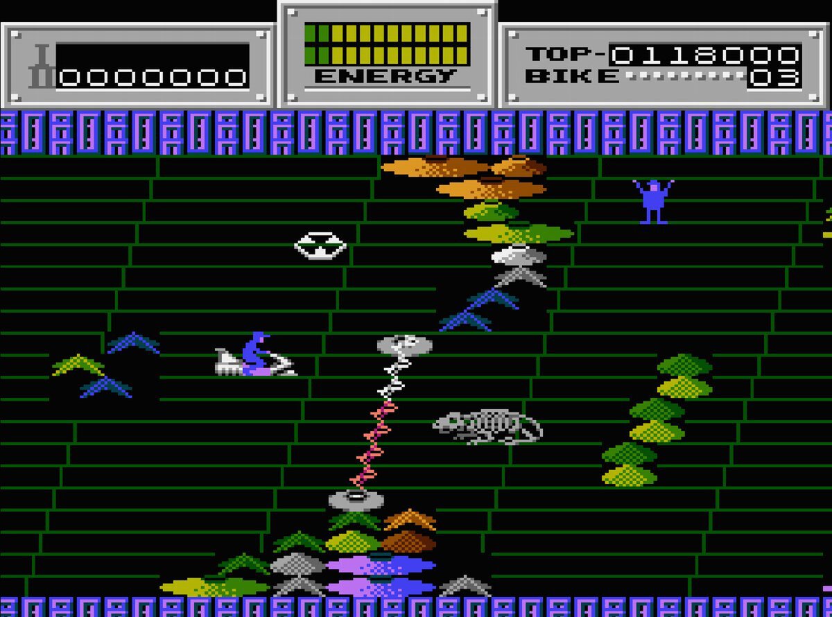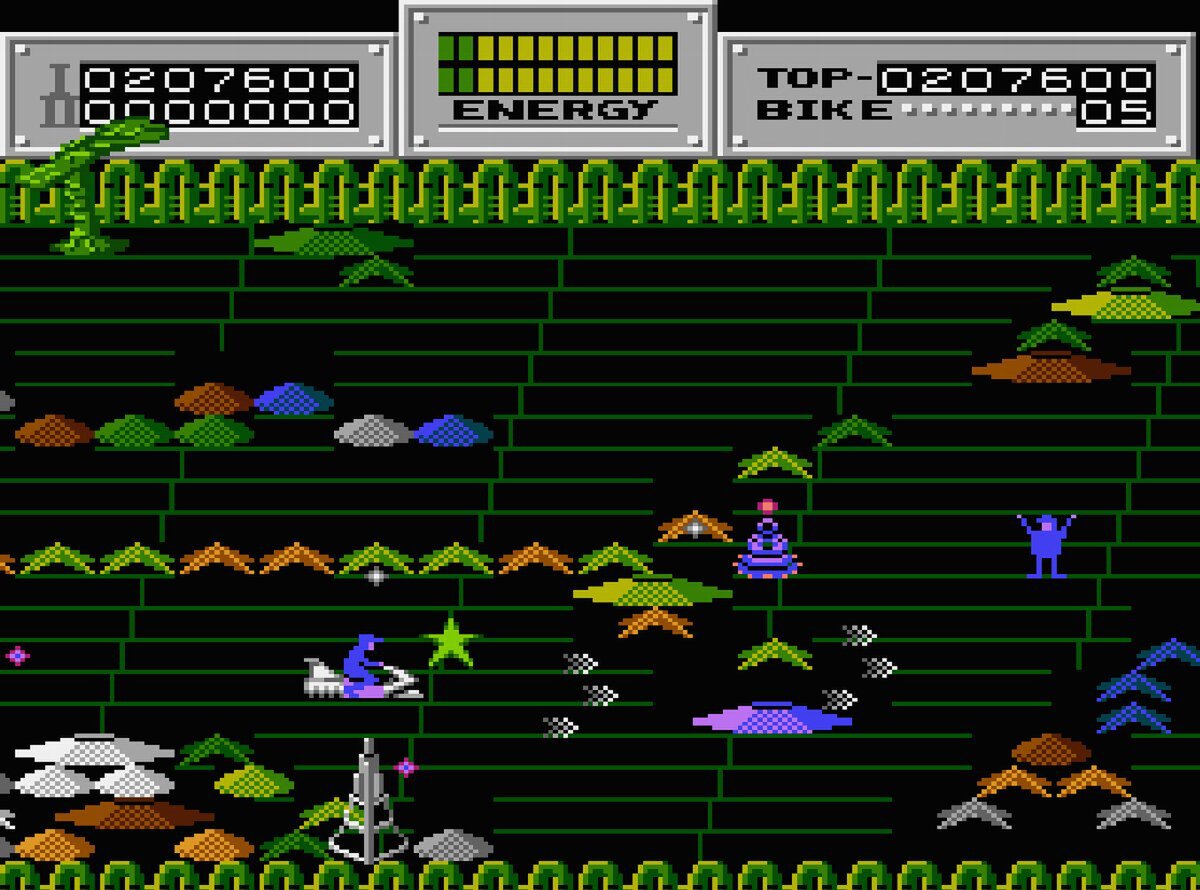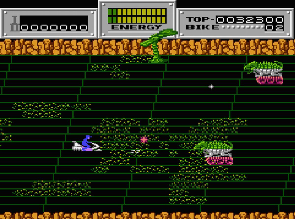 『セクロス』は、1986年にニチブツから8ビットの家庭用ゲーム機向けに発売されたシューティングゲーム。かつては共存していた悪の部族たちによって故郷を侵略されたペトラ人たちを救出するため、救助用のホバーリングバイクに乗って戦う。