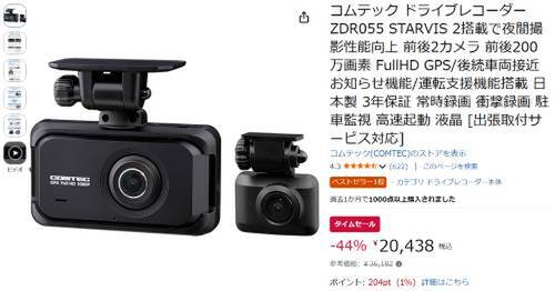 コムテックのドライブレコーダー「ZDR055(STARVIS 2搭載)」がAmazonタイムセール対象。参考価格36,182円のところ、44%オフの20,438円で販売中。