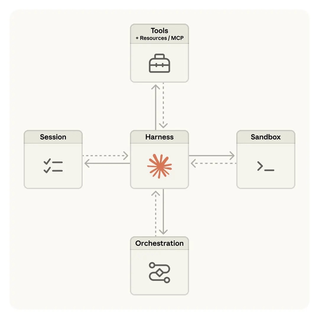 Managed Agentsでは、「頭脳」にあたるモデルとハーネス、「手」にあたる実行環境(サンドボックス)、「記録」にあたるセッションログを分離し、それぞれを独立したインターフェースとして設計することで、個別に交換・再起動できる構造にした。