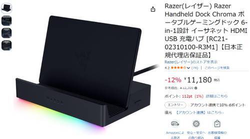 Razerのポータブルゲーミングドック「Razer Handheld Dock Chroma」がAmazonで割引対象。参考価格12,709円のところ、12%オフの11,180円で販売中。