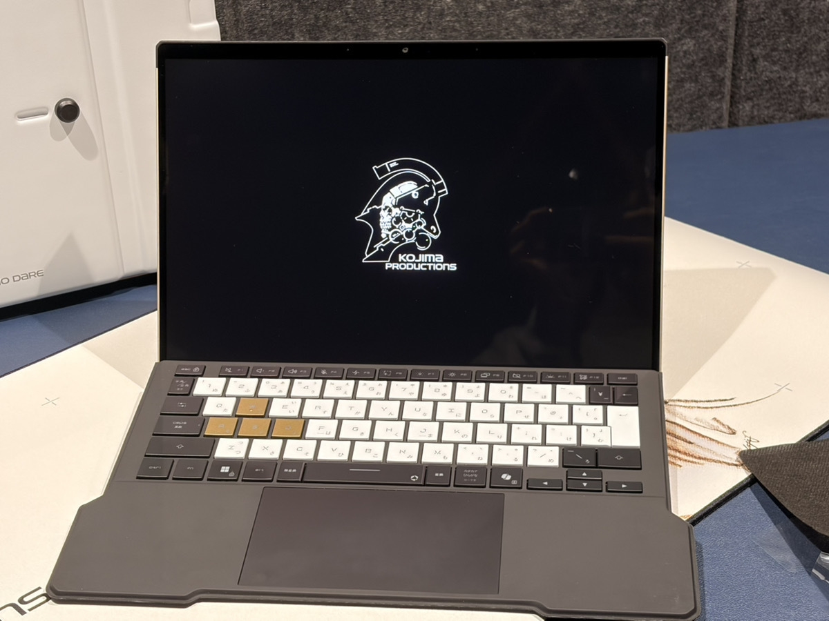 コジプロのアートディレクター・新川洋司氏がデザインを手掛けたルーデンスは、地球に誕生したあらゆる生命の進化の結晶と位置づけられるキャラクターで、同スタジオのロゴマークにもなっています。そのルーデンスが持つノートPCとは、どんなマシンなのか? このROG Flow Z13-KJP GZ302EACも、新川洋司氏が、デザイン画から起こして制作されています。
