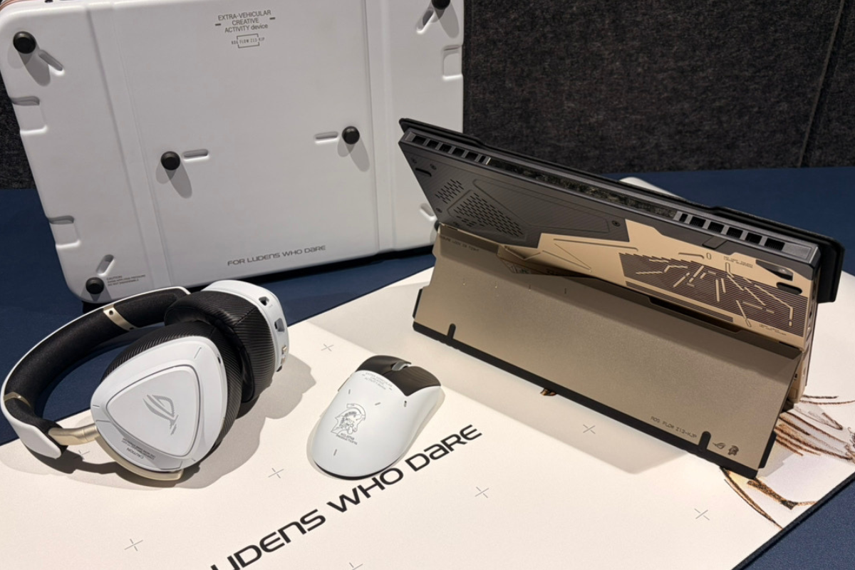 さらにさらに、この世界観を完璧なものにする周辺ガジェットたちがまたアツい! ルーデンスの美学に基づく「ビジョナリーデザイン」に、50mmチタンコーティングドライバーを搭載した「ROG Delta II-KJP(ヘッドセット)」。たった63gの超軽量ボディに究極の操作性を追求したエルゴノミクス設計の「ROG Keris II Origin-KJP(マウス)」、デスク全体をコジプロ仕様にできるXXLサイズの「ROG Scabbard II XXL-KJP(マウスパッド)」。PC以外は別売りとなりますが、全部揃ったときの「一式装備」感がすごい。単にキャラ絵をあしらっただけのコラボでなく、デザインに対する本気度が伝わるラインアップとなっています。