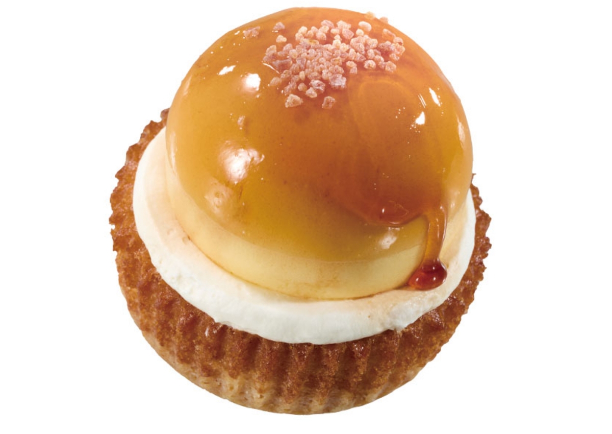 プリン風味のクリームとカスタードプリンフィリングを巻き、カラメルソースのほろ苦さをアクセントに加えたロールケーキです。