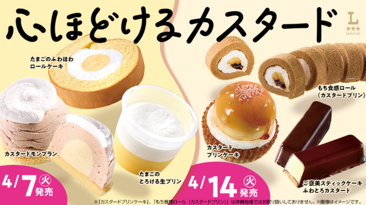 新生活が始まる時期に合わせ、“カスタード”をテーマにした商品が集合。1週目はロールケーキ、モンブラン、プリン、パイシューの4商品で、2週目はプリンケーキ、もち食感ロール、スティックケーキの3商品が登場します。