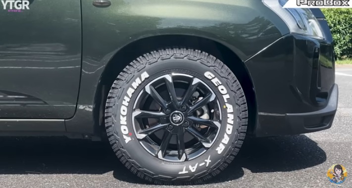YOKOHAMAの「GEOLANDAR」タイヤ&ホイールとセットで15万円ほど。ゴツゴツのしたデザインのタイヤがよく似合います。