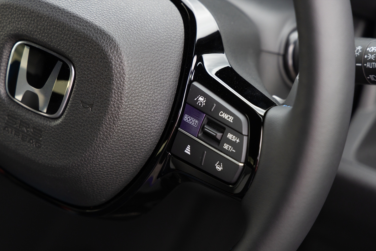 次にBOOSTモードを搭載したこと。モーターはN-ONE :eと同じなのですが、N-ONE :eは軽自動車規格では64馬力に抑えられていた最高出力を、約100馬力(正しくは95馬力程度)にまで解放! 軽自動車の軽さで100馬力、これが楽しくないわけがありません! ちなみに最大トルクはN-ONE :eと同程度、最高速度のリミッターも135km/hと、N-ONE :eと同じです。