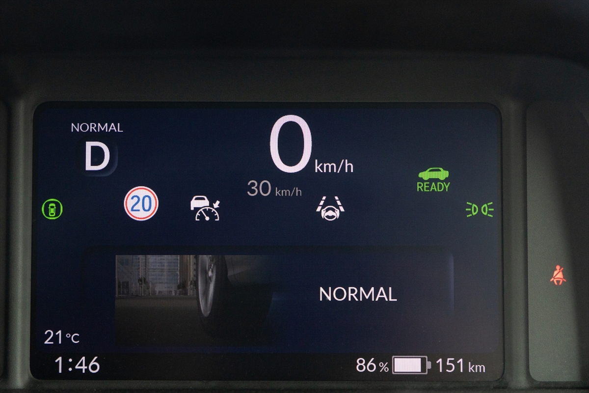 走行モードはほかに、派手な擬似エンジンサウンドはそのままに、出力を64馬力に制限したSPORTモード、静かなNORMALモード、航続距離を延ばすECOモード、そしてワンペダル動作のCITYモードと多彩。走りのシーンにあわせて色々楽しめそうです。