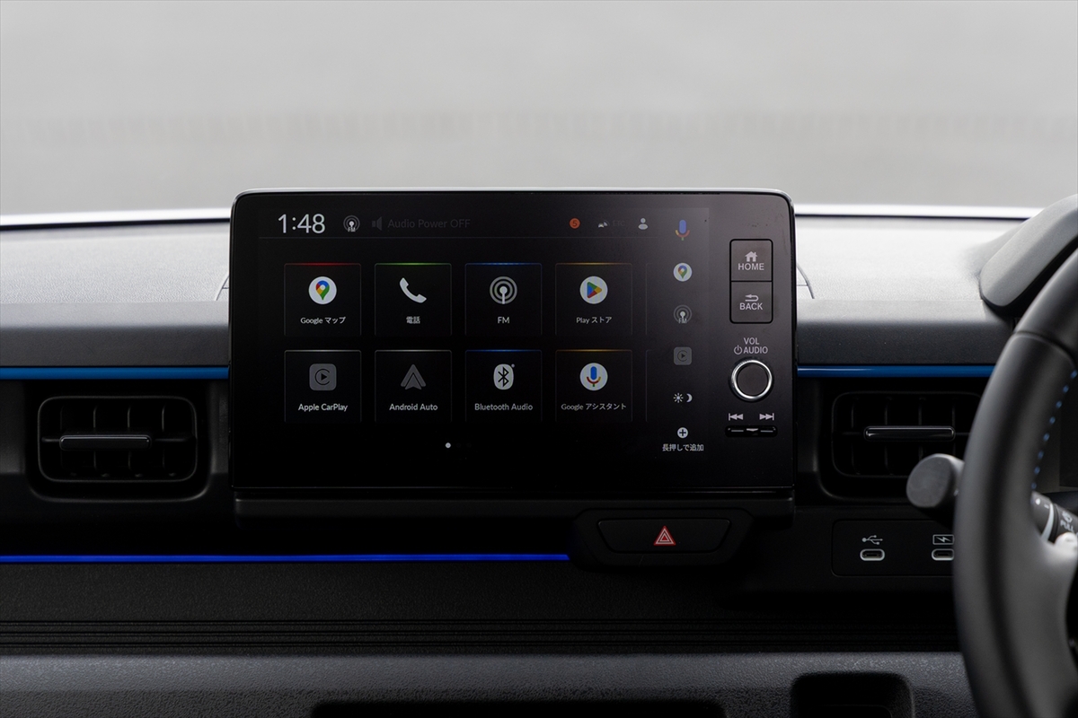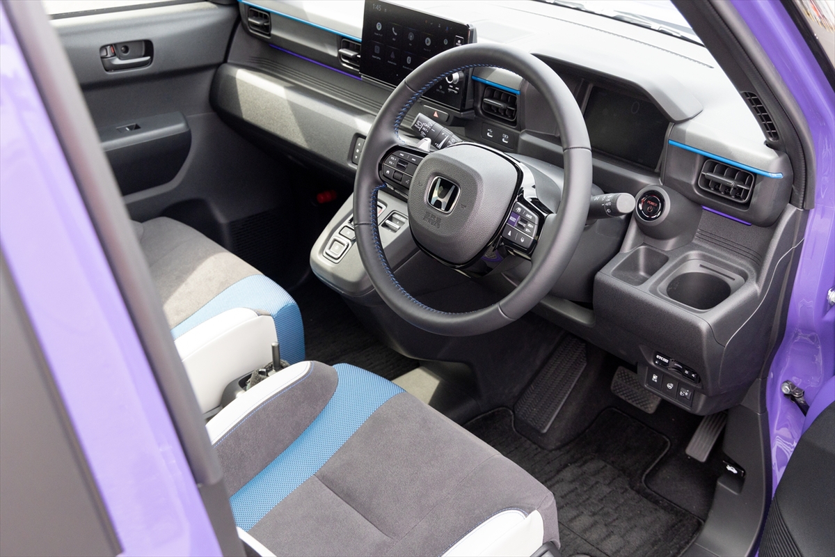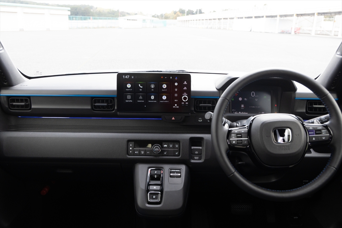 インテリアは専用シート(セミバケットタイプ)が用意されているほか、センターディスプレイはほかのHonda車でおなじみとなったGoogleアシスタント入りの9インチタイプをマウント。N-ONE e:では、オプションのナビを別途購入するタイプでした。