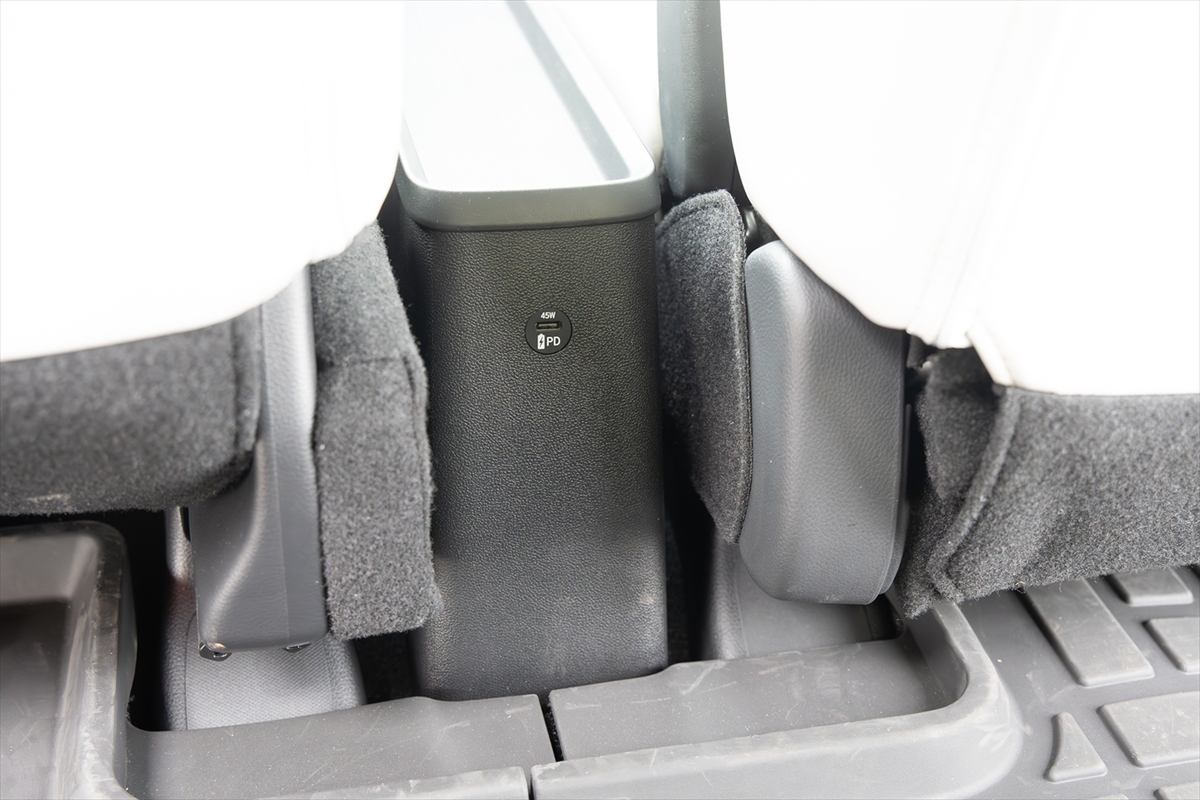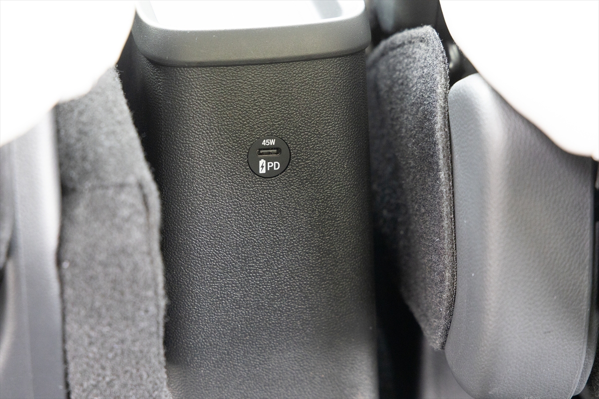個人的には後席用のPD45W出力のUSB-C充電端子は、移動中にノートPCや大容量モバイルバッテリーを充電したい人にとってマストアイテムだと思います。