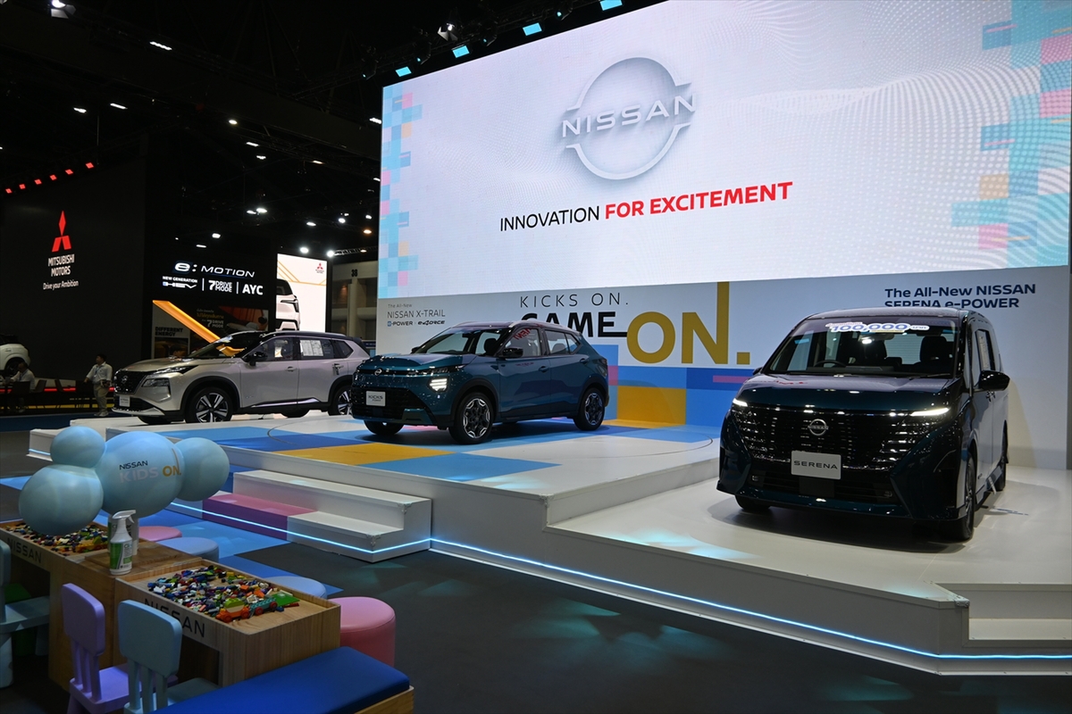 ハイブリッドを展示した日産と三菱自動車