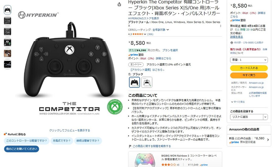 Amazon.co.jpにて、Xbox・PC対応コントローラー「Hyperkin The Competitor」が販売中だ。価格は8580円。