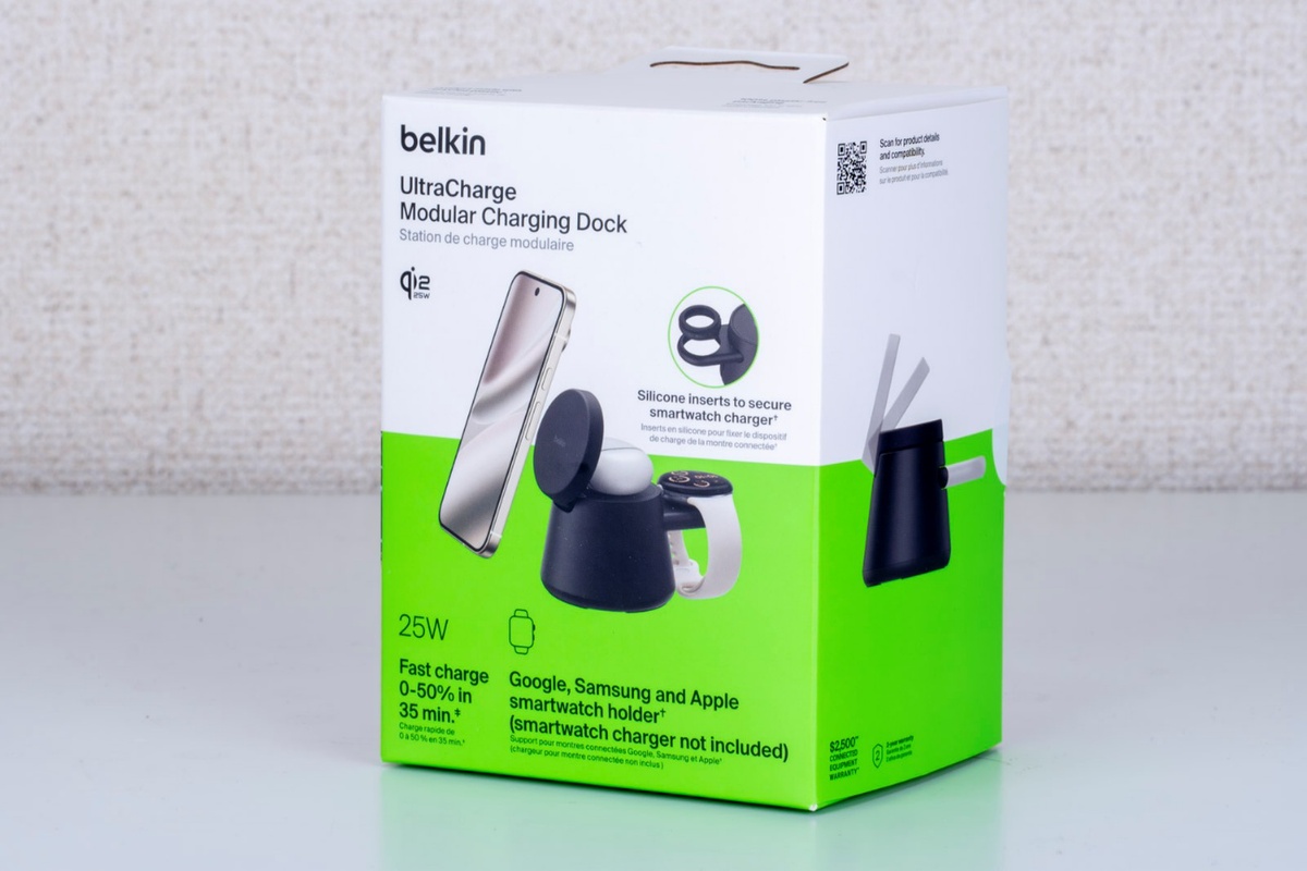 その解決策としてベルキンから登場したのが、「Modular Charging Dock with Qi2 25W」だ。最新のワイヤレス充電規格「Qi2」に対応し、iPhoneやApple WatchだけでなくGoogle PixelシリーズやSamsung Galaxyシリーズのスマホやスマートウォッチも利用できるのが最大の特徴だ。