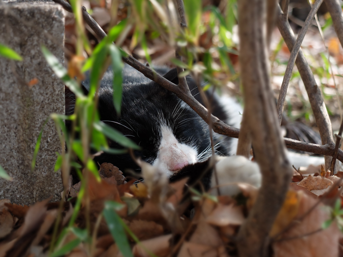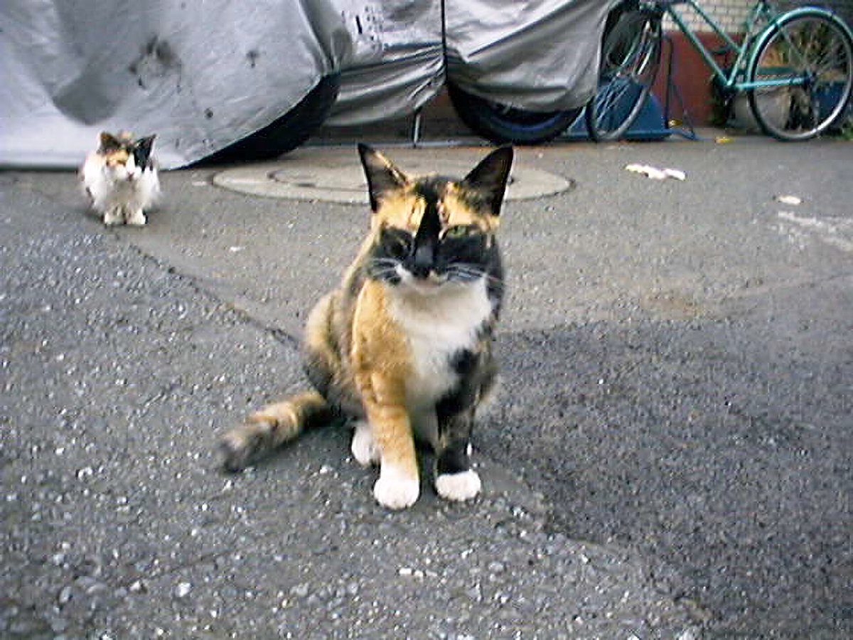 「FinePix S5000」で撮った中から、多摩川の河原で撮った2匹の猫を。多摩川サイクリングロードを上流に向かって走っていったとき、国立市あたりでふと出会った猫だ。階段の下からひょこっと顔を出したチャトラと、そーっと目だけ見せてるサビネコ。