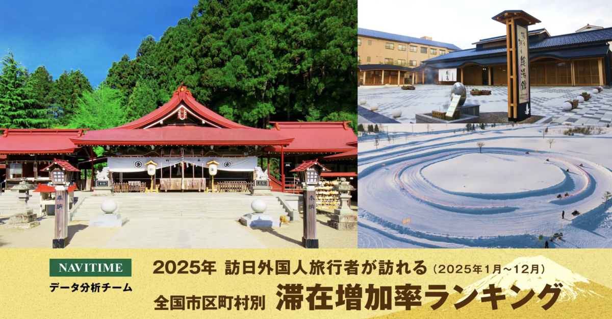 ナビタイムジャパンは、訪日外国人観光客向けナビゲーションアプリ「Japan Travel by NAVITIME」の利用データをもとに、2025年におけるインバウンド滞在増加率の分析結果を発表しました。同社では、GPSデータおよび属性アンケートをもとに、訪日外国人の周遊状況や滞在傾向を継続的に分析しています。